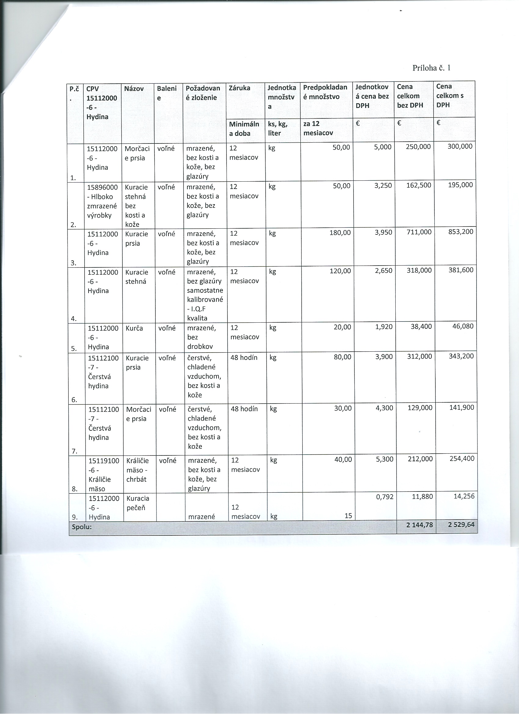 9. Rámcová dohoda č. 9-2016-ŠJ str.1, str.2, str.3, Príloha